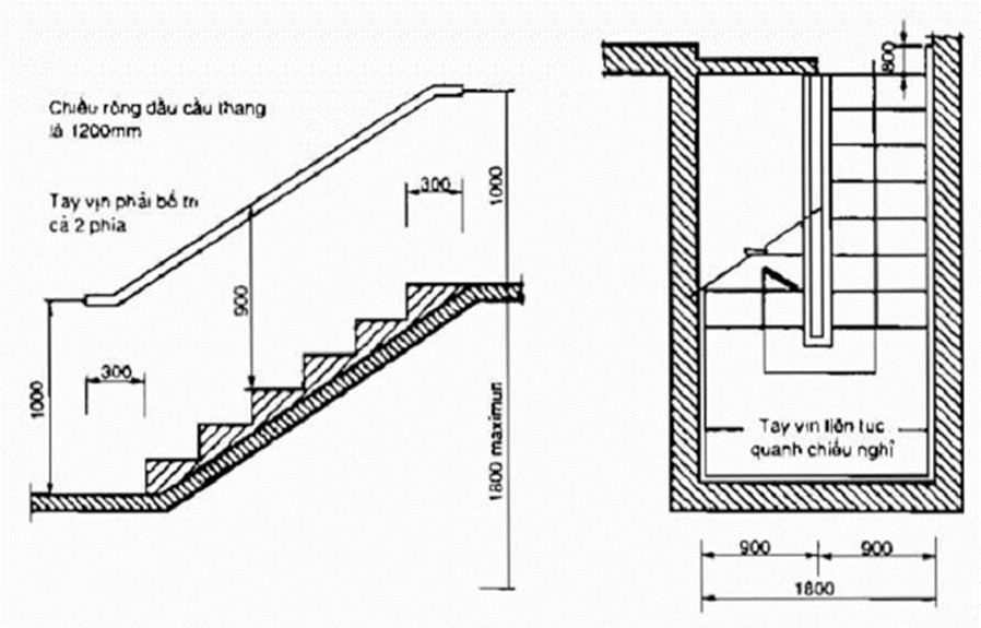 - Bề rộng mặt bậc không nhỏ hơn 300 mm;