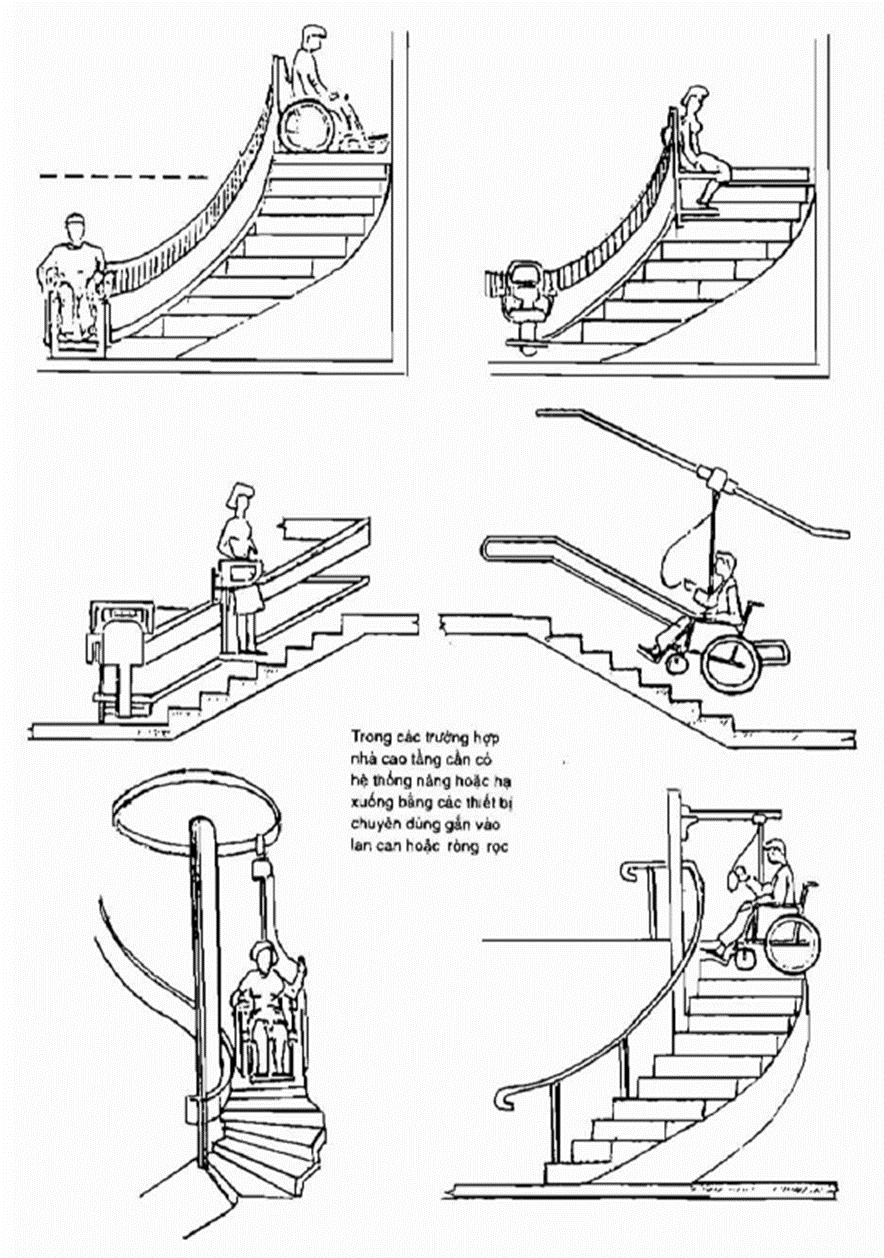 - Quy chuẩn xây dựng công trình để đảm bảo người tàn tật tiếp cận sử dụng.