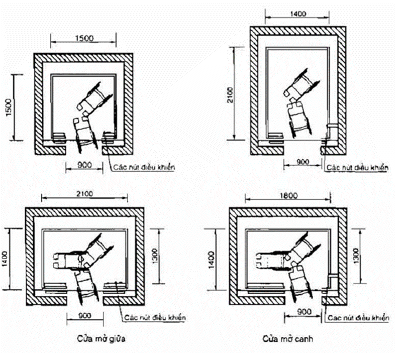 c) Kích thước thông thủy của buồng thang máy phải đảm bảo người tàn tật tiếp cận sử dụng;
