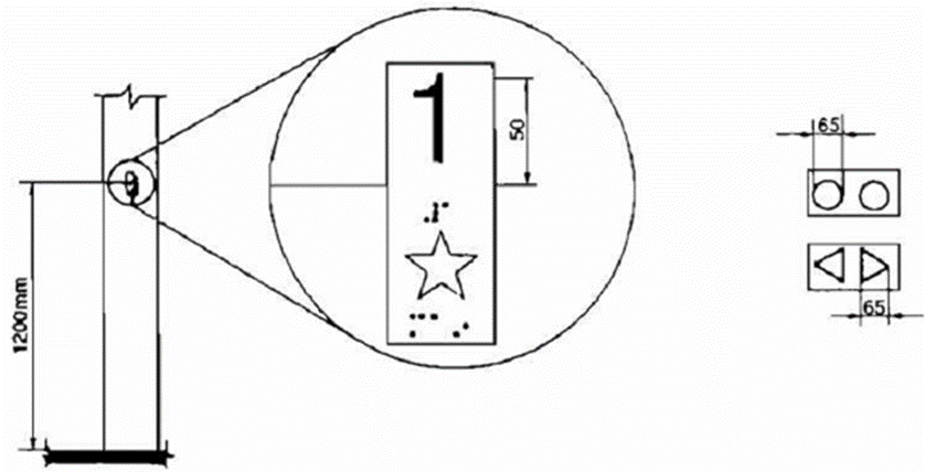 d) Trong buồng thang máy nên bố trí thiết bị âm thanh các kí tự nổi và hệ thống chữ nổi Brain cho những người khiếm thị.