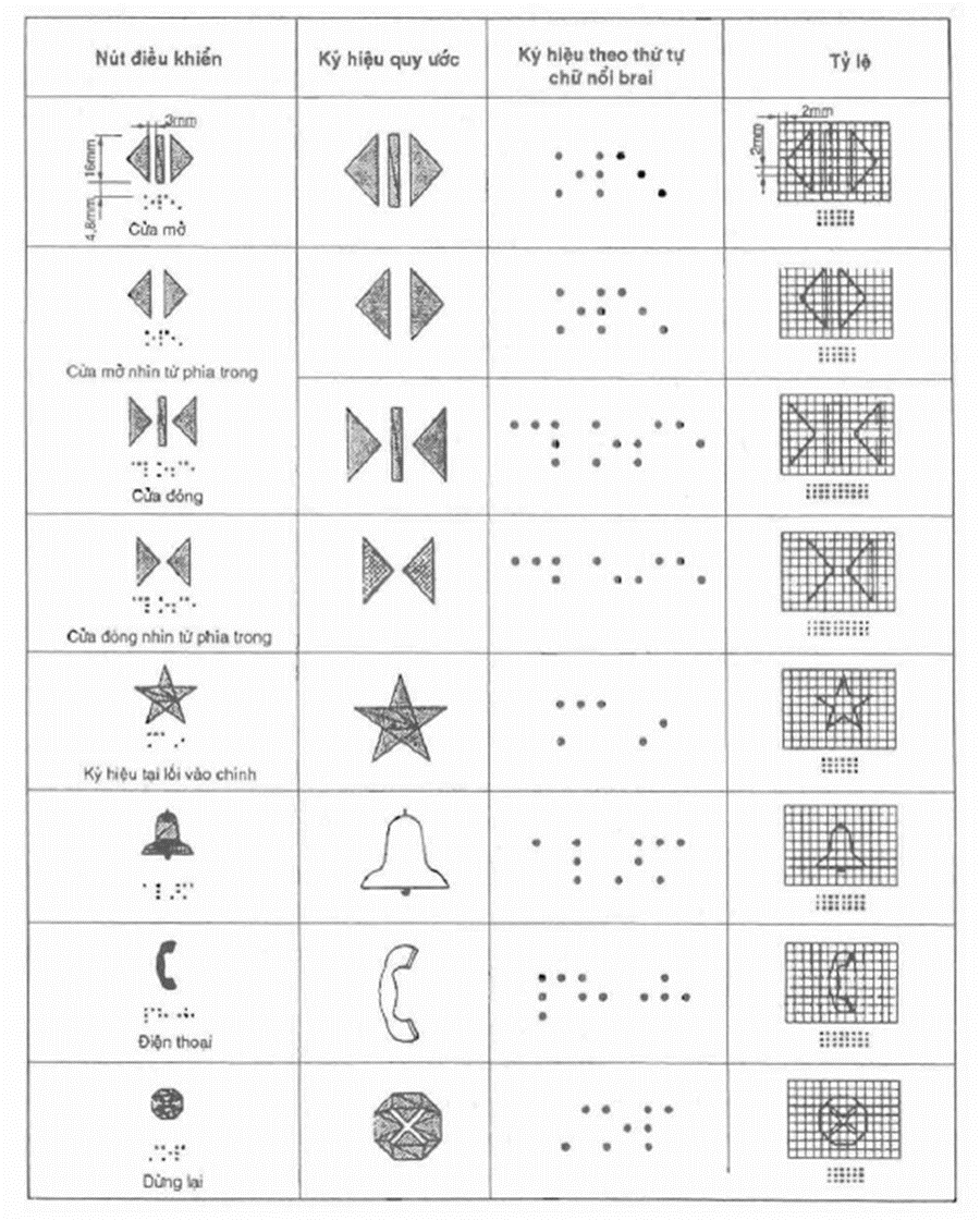 5.12.3.15. Trên các thiết bị nên có các kí hiệu hoặc kí tự bằng chữ nổi Brain để người khiếm thị có thể nhận biết được bằng cảm giác hoặc sờ tay.