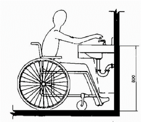 5.12.3.13. Các thiết bị xả nước hoặc vòi rửa phải sử dụng loại có cần gạt hoặc tự động để đảm bảo sử dụng của người tàn tật. Máy rửa bát có cửa mở ra không ảnh hưởng đến các hoạt động khác và có khoảng rộng thông thủy ở vị trí sát cạnh máy rửa bát.