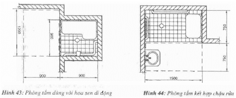 5.11.11. Trong phòng tắm phải bố trí vòi hoa sen di động dài 1500mm và có bộ hòa trộn nước nóng nước lạnh. Vòi và các bộ phận điều khiển phải đảm bảo sử dụng của người tàn tật. Các bộ phận điều khiển được lắp ở phía trên thanh vịn nhưng không được cách mặt sàn quá 1200mm và cách đường tâm của ghế 350mm về phía bên phải hoặc bên trái tùy ý.