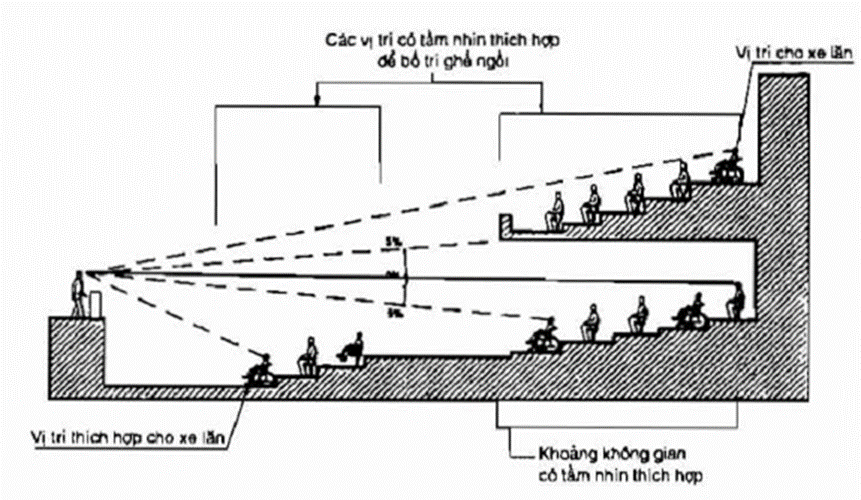 Hình 52: Tầm nhìn của người đi xe lăn trong phòng khán giả, hội trường