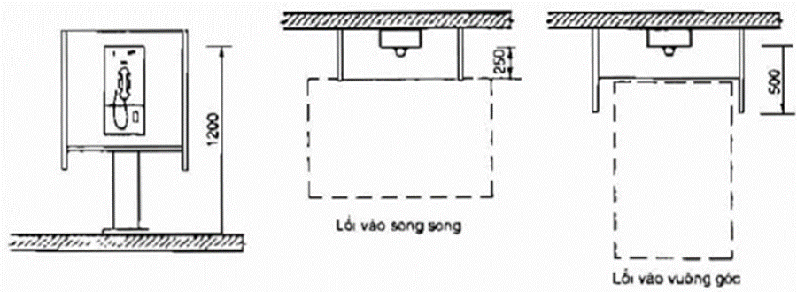 5.12.2.3. Trong khu vực giao tiếp ít nhất phải có một điện thoại công cộng được lắp đặt ở độ cao như hình 54.
