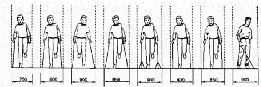 - Khi dùng hai nạng: chiều rộng cần thiết là từ 800mm đến 950mm