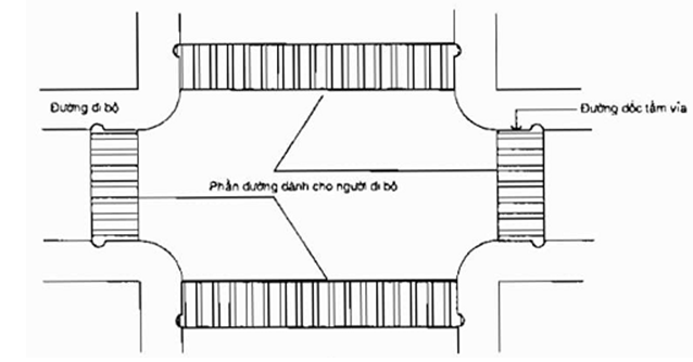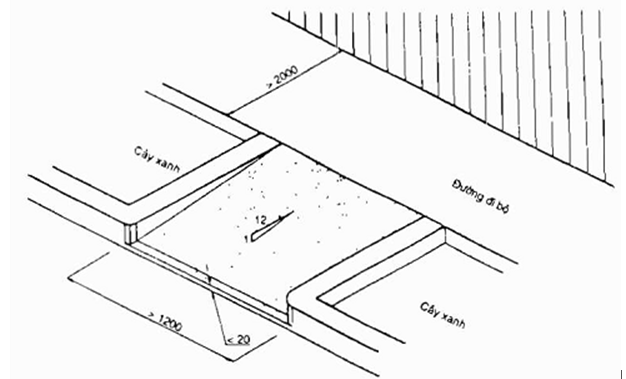 c) Đường dốc tâm vỉa hướng dọc theo đường đi bộ (xem hình 3);