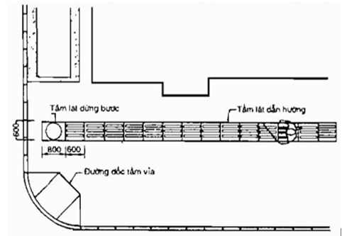 5.14. Trên đường vào công trình phải liên tục đặt các tấm lát dẫn hướng. Trước lối ra vào phải đặt tấm lát dừng bước. Chiều rộng tấm lát không được nhỏ hơn 600mm, xem hình 8.