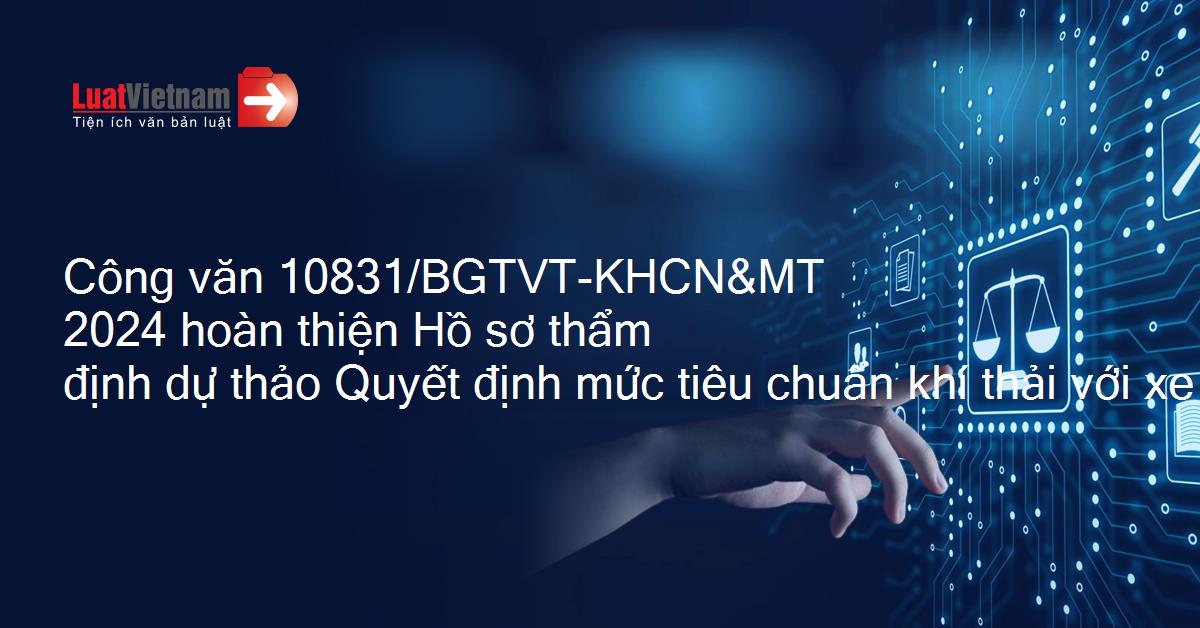 Công văn 10831/BGTVT-KHCN&MT 2024 hoàn thiện Hồ sơ thẩm định dự thảo Quyết định mức tiêu chuẩn khí thải với xe cơ giới