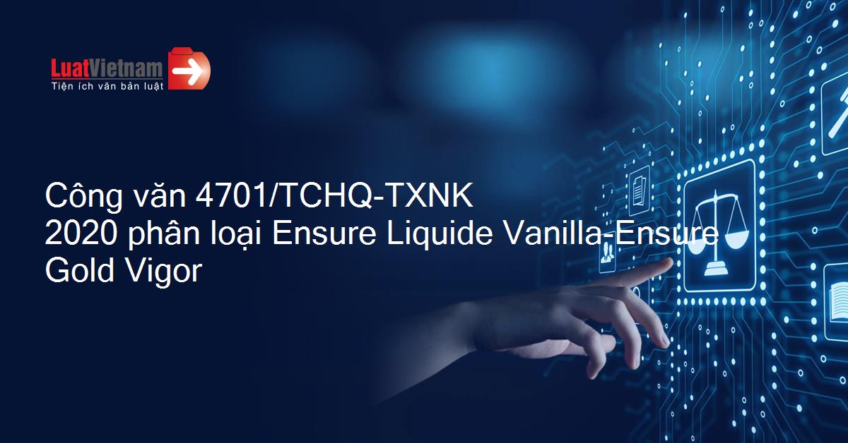 Công văn 4701/TCHQ-TXNK 2020 phân loại Ensure Liquide Vanilla-Ensure Gold Vigor