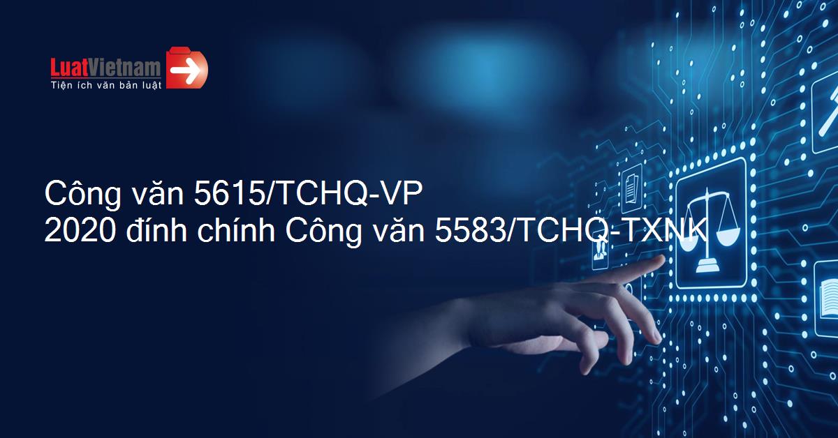 Công văn 5615/TCHQ-VP 2020 đính chính Công văn 5583/TCHQ-TXNK