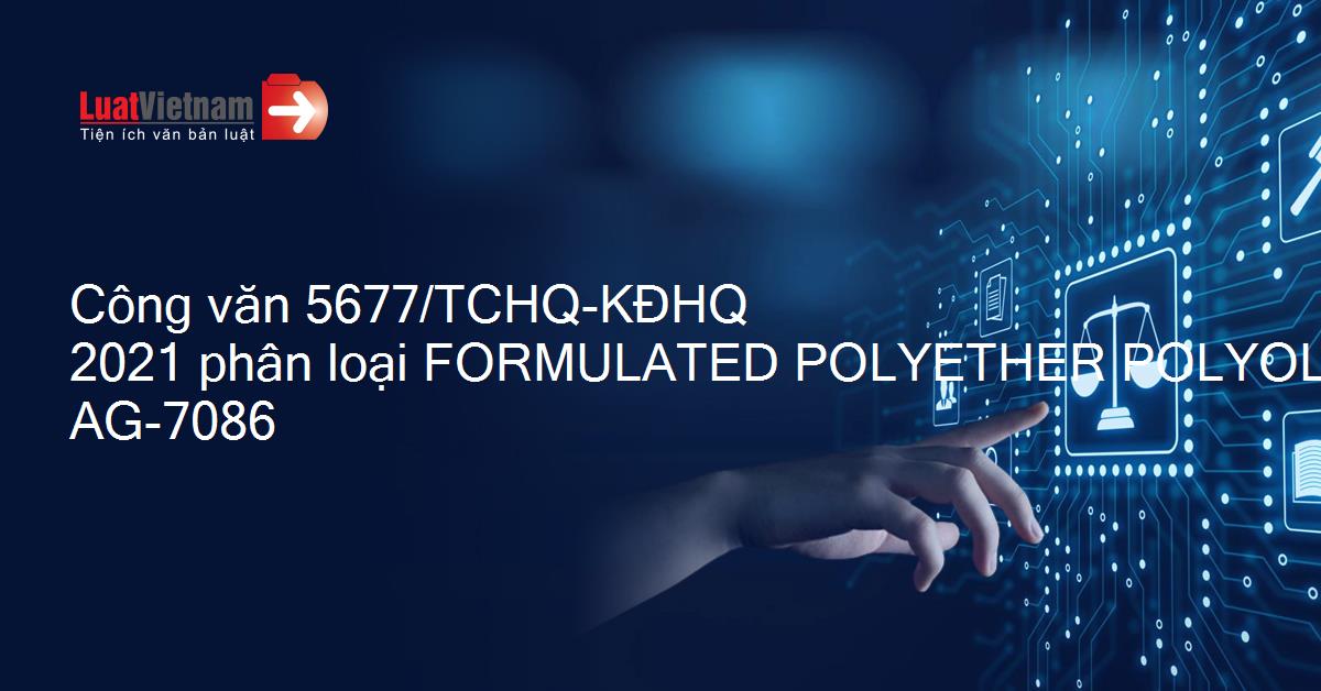 Công văn 5677/TCHQ-KĐHQ 2021 phân loại FORMULATED POLYETHER POLYOL AG-7086
