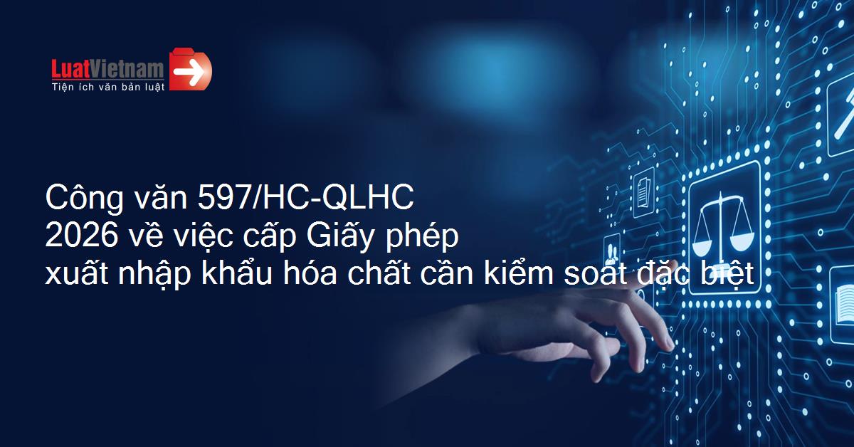 Công văn 597/HC-QLHC 2026 về việc cấp Giấy phép xuất nhập khẩu hóa chất cần kiểm soát đặc biệt
