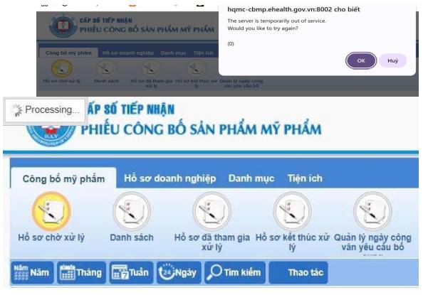 Cục Quản lý Dược trân trọng cảm ơn sự hợp tác của Quý Trung tâm trong thời gian qua đã luôn đồng hành, phối hợp và hỗ trợ thực hiện việc nâng cấp, hoàn thiện “Hệ thống cấp số tiếp nhận Phiếu công bố sản phẩm mỹ phẩm nhập khẩu trực tuyến”. Cục Quản lý Dược thường xuyên phối hợp với Trung tâm và đối tác công nghệ thông tin thực hiện khắc phục các lỗi của Hệ thống cấp số tiếp nhận Phiếu công bố sản phẩm mỹ phẩm nhập khẩu trực tuyến, tuy nhiên, ngày 11/03/2026, Cục Quản lý Dược ghi nhận sự cố liên quan đến truy cập Hệ thống https://hqmc-cbmp.ehealth.gov.vn:8002/index.zul, cụ thể: