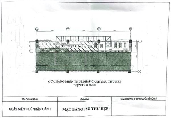 - Khu vực quầy miễn thuế nhập cảnh: tại vị trí E02-W02, tầng 1, nhà ga hành khách T2, Cảng hàng không sân bay quốc tế Nội Bài, diện tích sau khi thu hẹp là 65m2 (kèm theo sơ đồ địa điểm thu hẹp).