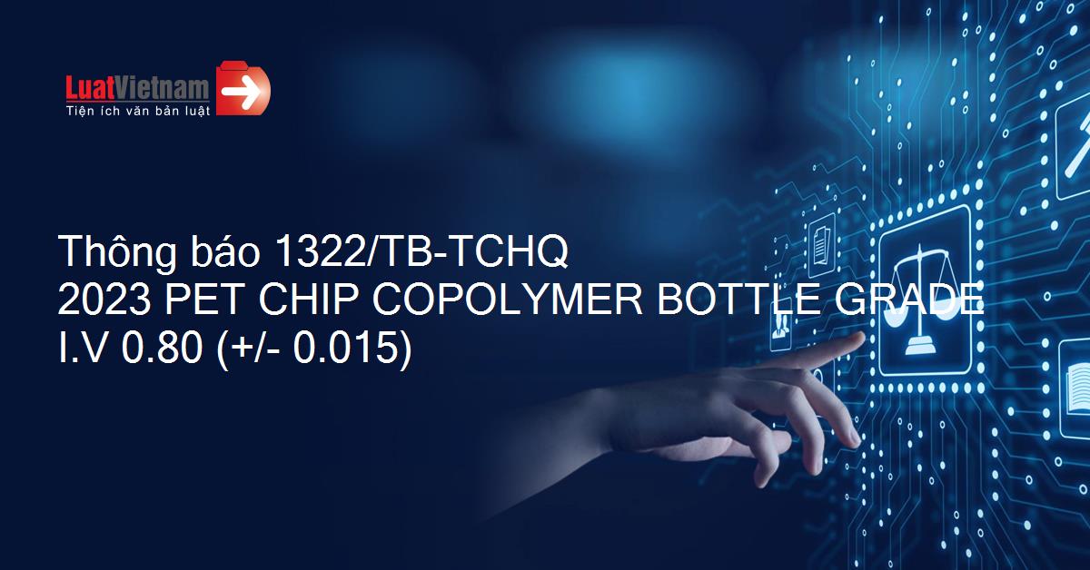 Thông báo 1322/TB-TCHQ 2023 PET CHIP COPOLYMER BOTTLE GRADE I.V 0.80 (+/- 0.015)