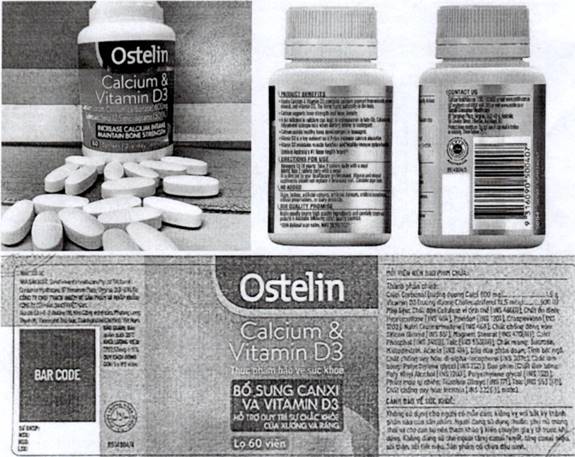 | Tên thương mại: Thực phẩm bảo vệ sức khỏe Ostelin Calcium & Vitamin D3. Tên gọi theo cấu tạo, công dụng: Thực phẩm bảo vệ sức khỏe Ostelin Calcium & Vitamin D3. | ||||||||||||||