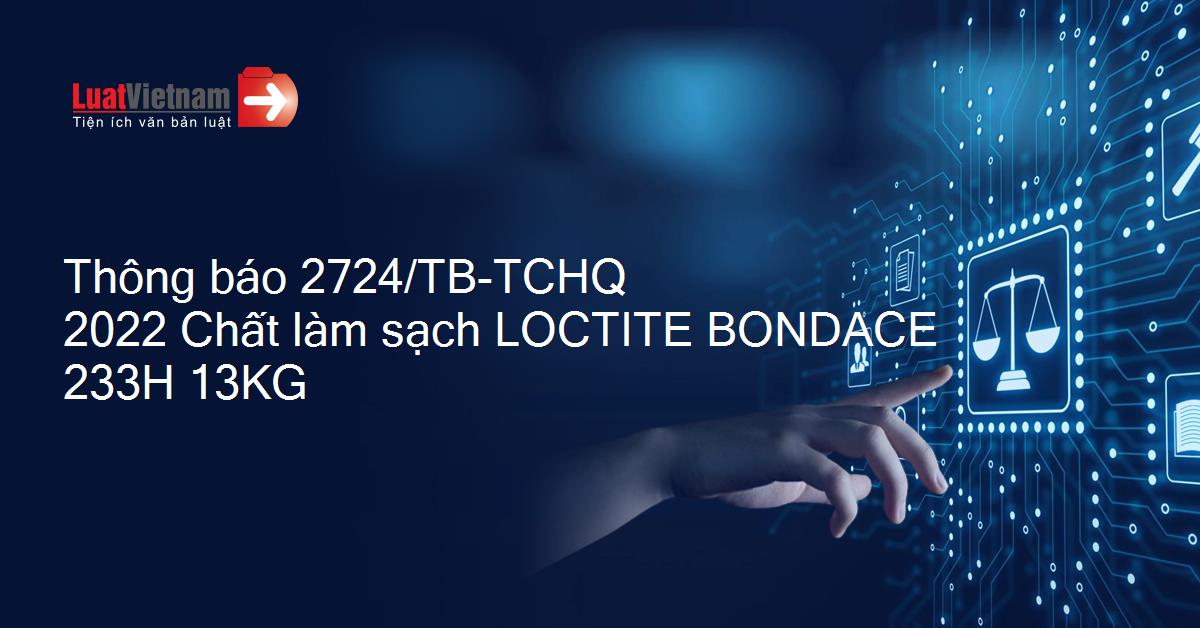 Thông báo 2724/TB-TCHQ 2022 Chất làm sạch LOCTITE BONDACE 233H 13KG