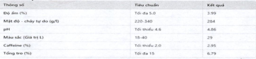 | 2. Tóm tắt mô tả hàng hóa được xác định trước mã số: - Thành phần, cấu tạo, công thức hóa học, hàm lượng tính trên trọng lượng: 80% cà phê hòa tan + 20% brown maltodextrin. - Thông số kỹ thuật: + Theo hồ sơ “Certificate of Analysis” đính kèm * Đặc tính lý hóa: