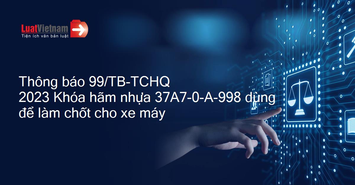 Thông báo 99/TB-TCHQ 2023 Khóa hãm nhựa 37A7-0-A-998 dùng để làm chốt cho xe máy