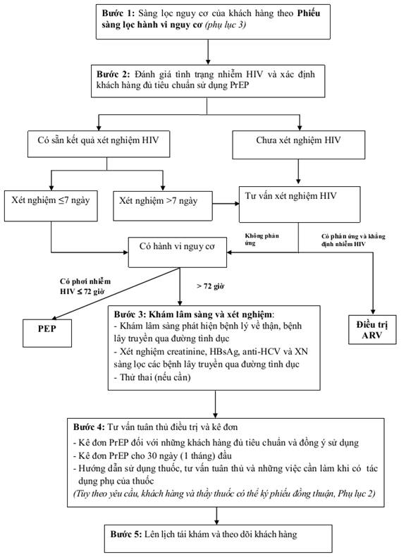 - Không chỉ định PrEP nếu có phơi nhiễm với HIV trong vòng 72 giờ qua. Đánh giá và kê đơn điều trị dự phòng sau phơi nhiễm (PEP) và sau đó xem xét chỉ định PrEP.