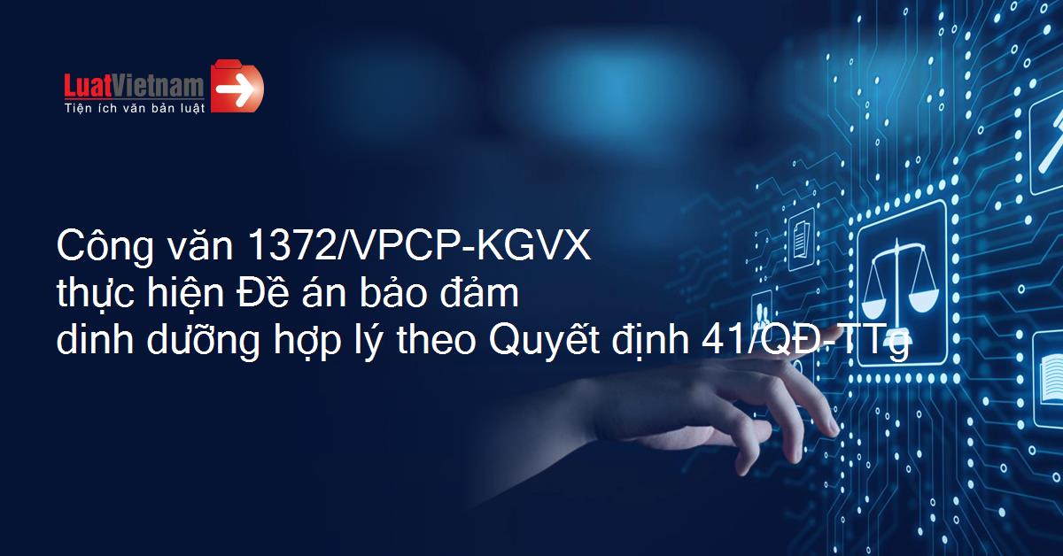 Công văn 1372/VPCP-KGVX của Văn phòng Chính phủ về việc thực hiện Đề án bảo đảm dinh dưỡng hợp lý theo Quyết định 41/QĐ-TTg
