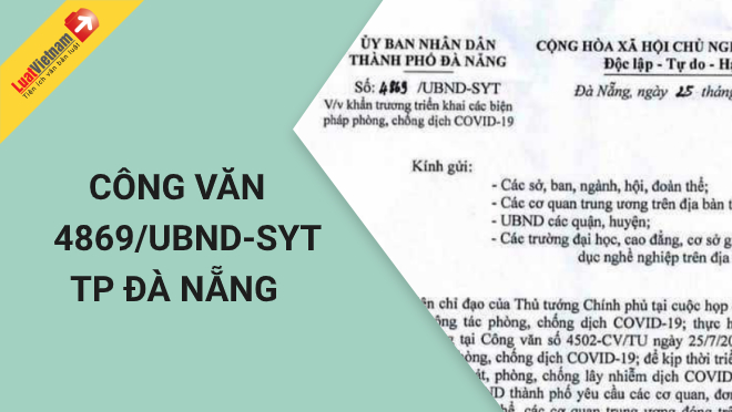 | ỦY BAN NHÂN DÂN THÀNH PHỐ ĐÀ NẴNG ___________ Số: 4869/UBND-SYT V/v Khẩn trương triển khai các biện pháp phòng, chống dịch COVID-19 | CỘNG HÒA XÃ HỘI CHỦ NGHĨA VIỆT NAM Độc lập – Tự do – Hạnh phúc _______________________ Đà Nẵng, ngày 25 tháng 7 năm 2020 |