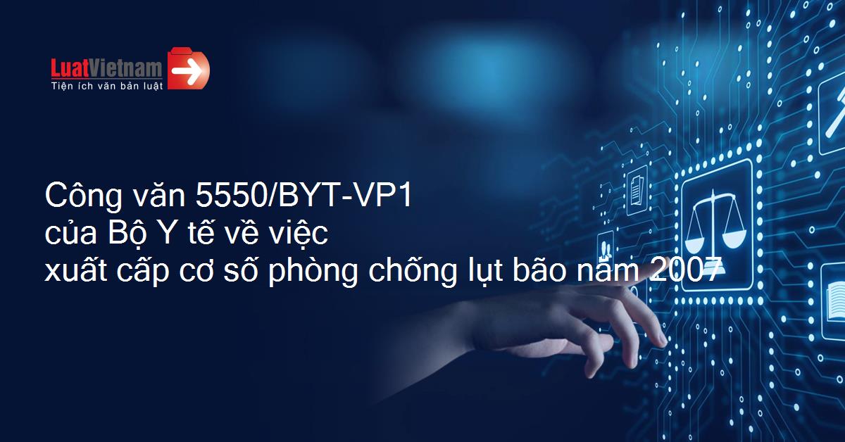 | Số: 5550/BYT-VP1 V/v xuất cấp cơ số phòng chống lụt bão năm 2007. | Hà Nội, ngày 09 tháng 08 năm 2007 |