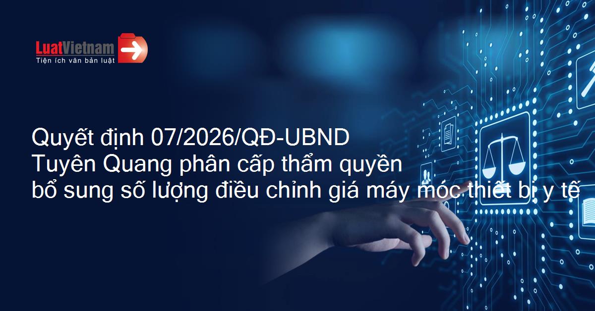 Quyết định 07/2026/QĐ-UBND Tuyên Quang phân cấp thẩm quyền bổ sung số lượng điều chỉnh giá máy móc thiết bị y tế