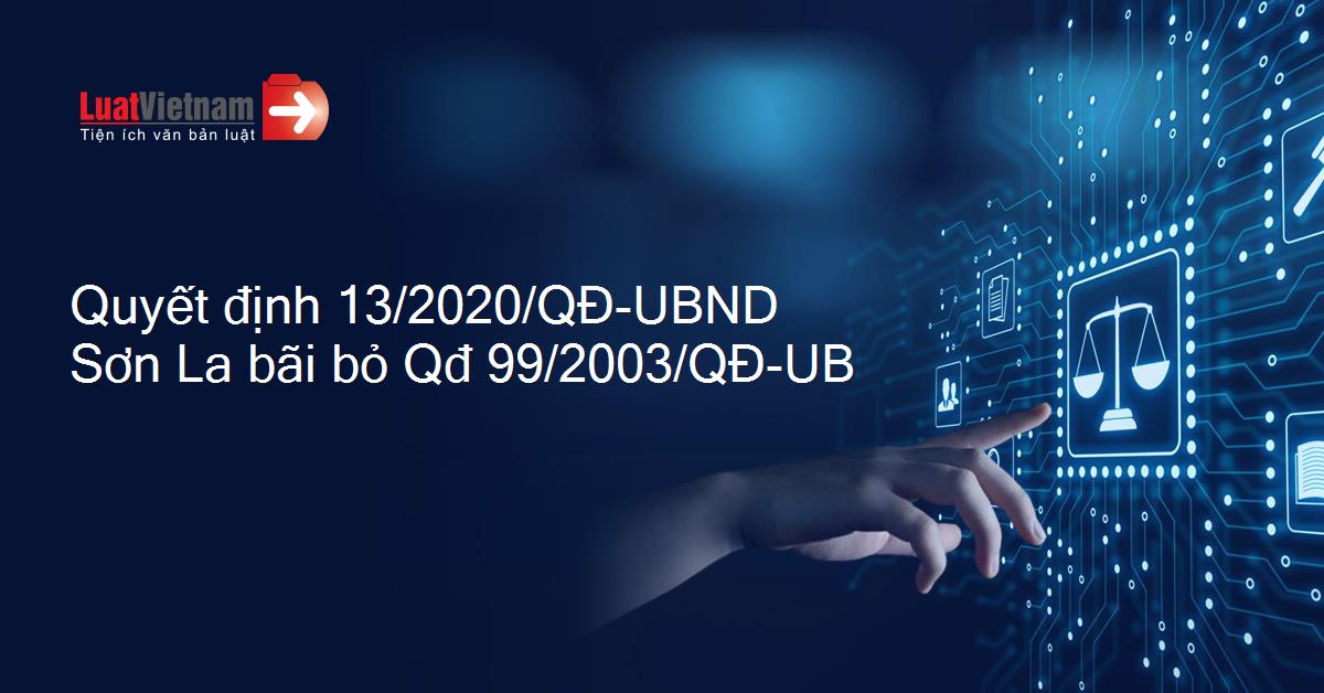 Quyết định 13/2020/QĐ-UBND Sơn La bãi bỏ Qđ 99/2003/QĐ-UB