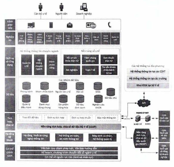 - Lớp nghiệp vụ (các nhóm nghiệp vụ chuyên môn thuộc thẩm quyền của Bộ Y tế phục vụ quản lý, điều hành công tác chuyên môn);…