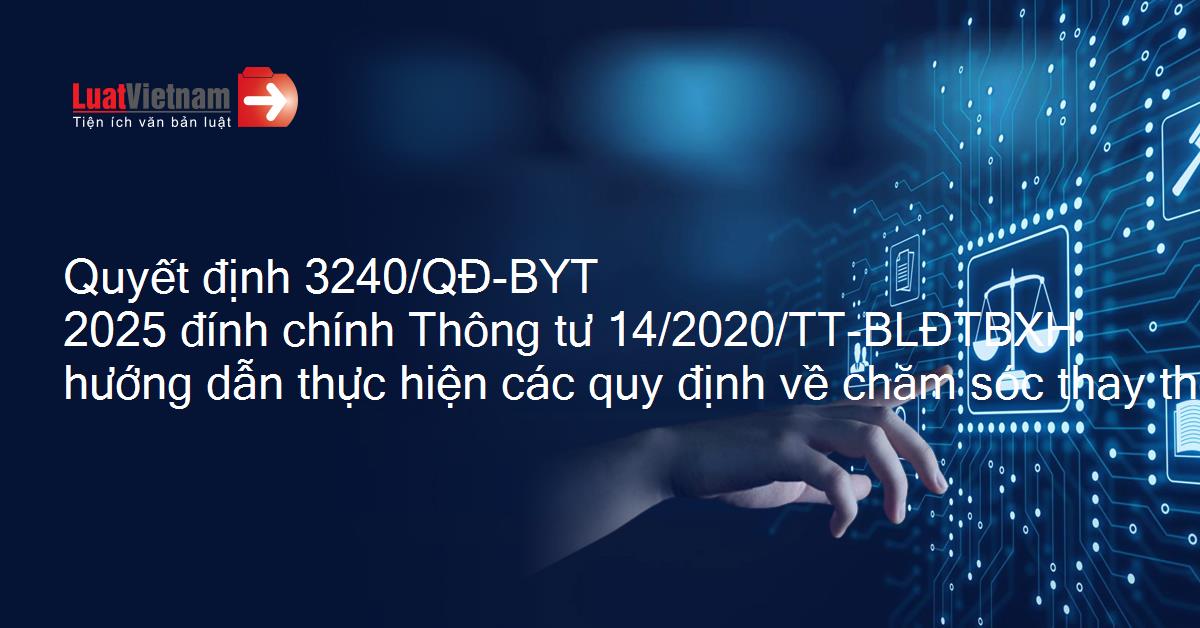 Quyết định 3240/QĐ-BYT 2025 đính chính Thông tư 14/2020/TT-BLĐTBXH hướng dẫn thực hiện các quy định về chăm sóc thay thế cho trẻ em