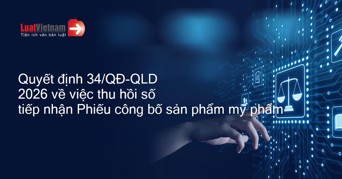 Quyết định 34/QĐ-QLD 2026 về việc thu hồi số tiếp nhận Phiếu công bố sản phẩm mỹ phẩm