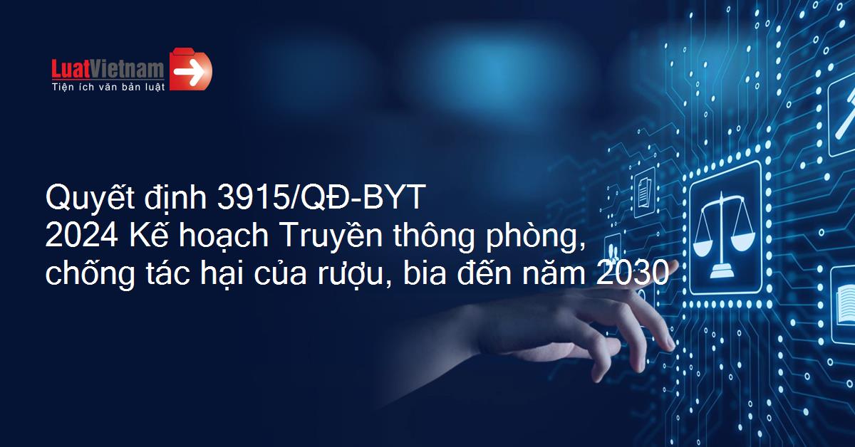 Quyết định 3915/QĐ-BYT 2024 Kế hoạch Truyền thông phòng, chống tác hại của rượu, bia đến năm 2030