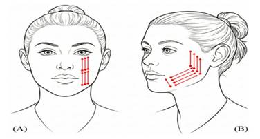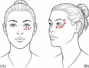 - Tay cầm dụng cụ cạo gió, để nghiêng góc 45 độ hoặc 90 độ rồi tiến hành cạo theo 1 chiều nhất định xuôi dọc chiều cơ thể từ trên xuống dưới (hoặc từ trong ra ngoài khi cạo ở vùng ngực). Chú ý dùng lực vừa và miết dài dụng cụ cạo gió.