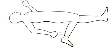 Người bệnh ở tư thế nằm ngửa thoải mái dễ chịu, thuận tiện để làm khuôn bột xương đùi, xương chậu, cột sống, cẳng, bàn chân.