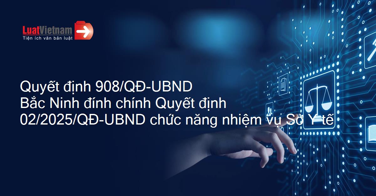 Quyết định 908/QĐ-UBND Bắc Ninh đính chính Quyết định 02/2025/QĐ-UBND chức năng nhiệm vụ Sở Y tế