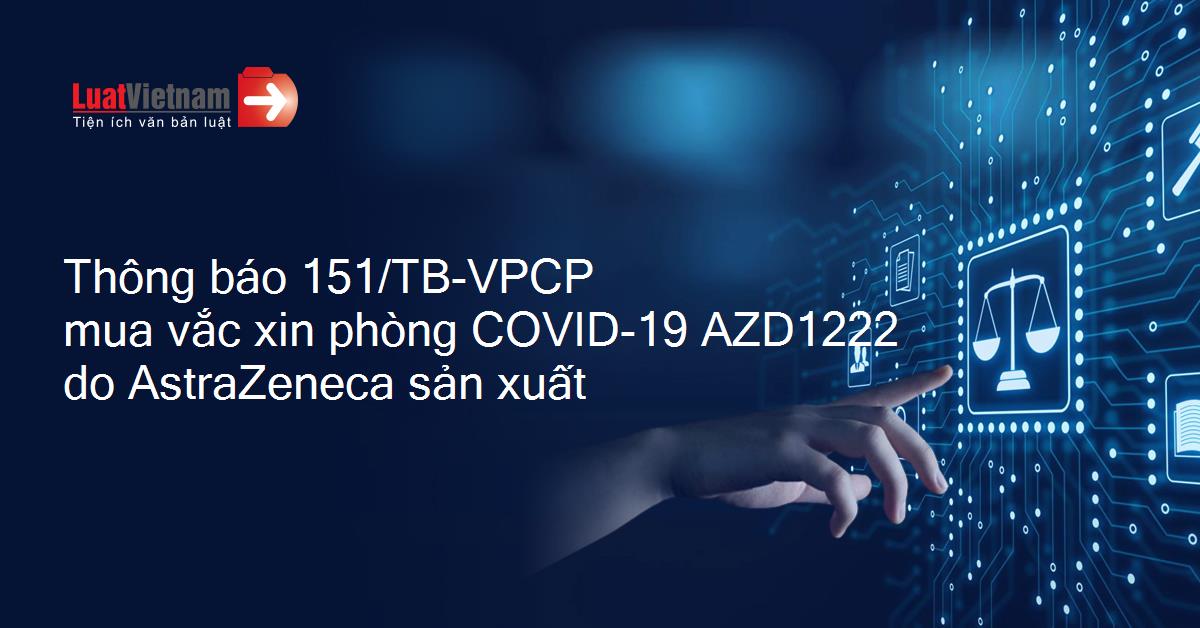 Thông báo 151/TB-VPCP mua vắc xin phòng COVID-19 AZD1222 do AstraZeneca sản xuất