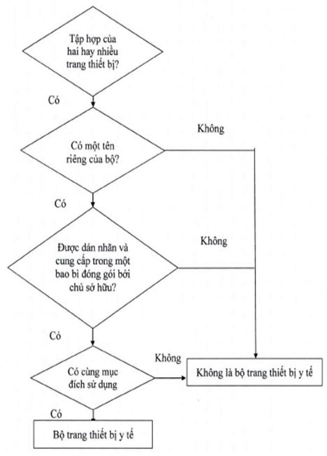 Bộ trang thiết bị y tế khác là một tập hợp gồm hai hay nhiều trang thiết bị y tế không thuộc loại trang thiết bị y tế chẩn đoán in vitro được dán nhãn và cung cấp trong một đơn vị đóng gói duy nhất bởi một chủ sở hữu, Bộ được xác định: