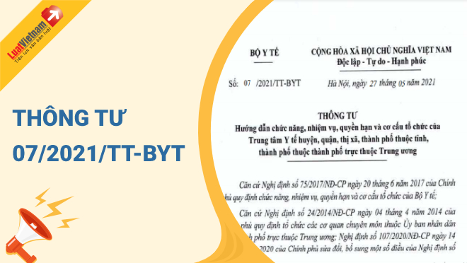 Ngày 27/5/2021, Bộ Y tế đã ban hành Thông tư 07/2021/TT-BYT về việc hướng dẫn chức năng, nhiệm vụ, quyền hạn và cơ cấu tổ chức của Trung tâm y tế huyện, quận, thị xã, thành phố thuộc tỉnh, thành phố thuộc thành phố trực thuộc Trung ương.