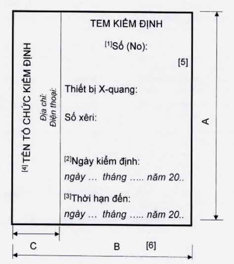 Chú thích: [1]. Số (số tem): là các số tự nhiên kế tiếp nhau để quản lý và theo dõi. [2]. Ngày kiểm định: ghi ngày, tháng, năm kiểm định (ví dụ: ngày 01 tháng 12 năm 2023) [3]. Thời hạn đến: ghi ngày cuối cùng của chu kỳ kiểm định (ví dụ: ngày 30 tháng 11 năm 2025). |