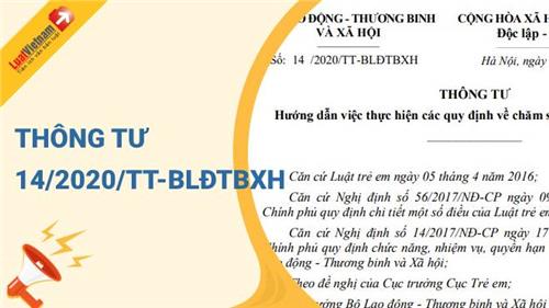 Ngày 28/11/2020, Bộ Lao động Thương binh và Xã hội ban hành Thông tư 14/2020/TT-BLĐTBXH về hướng dẫn việc thực hiện các quy định về chăm sóc thay thế cho trẻ em.