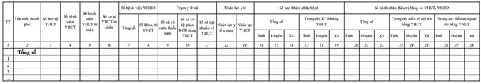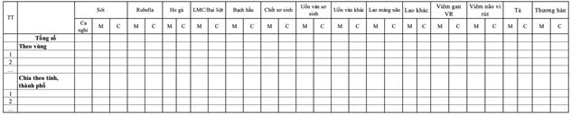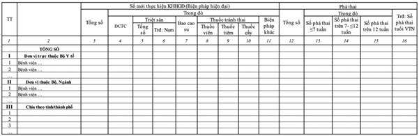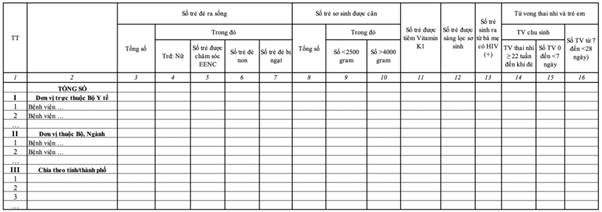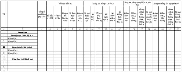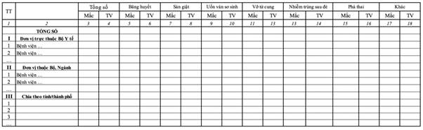- Cấp trung ương: Các đơn vị trực thuộc Bộ Y tế gửi báo cáo theo mẫu trong Phụ lục V, với thời hạn nộp là 10 ngày sau khi kết thúc kỳ báo cáo.