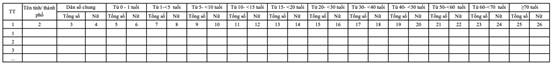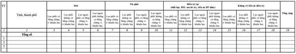 Cột 1: Số thứ tự theo tỉnh/ thành phố