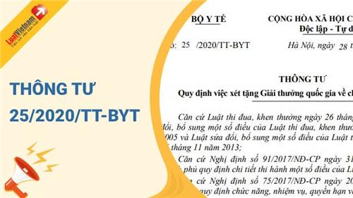 Ngày 28/12/2020, Bộ Y tế ban hành Thông tư 25/2020/TT-BYT về việc quy định việc xét tặng Giải thưởng quốc gia chất lượng bệnh viện.