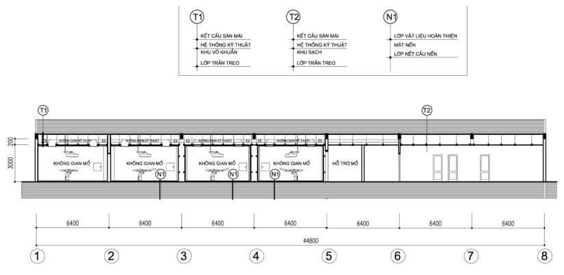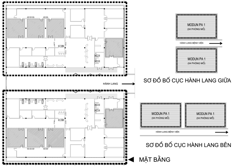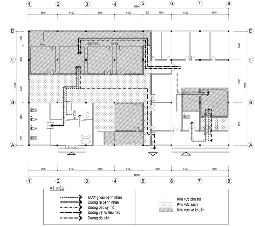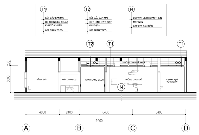 Mặt cắt, mặt bằng kỹ thuật phòng mổ