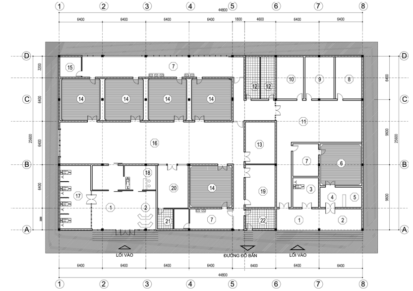 7. | Lối vào nhân viên | 15. | Kho vật tư tiêu hao | 23. | Phòng đồ thải |