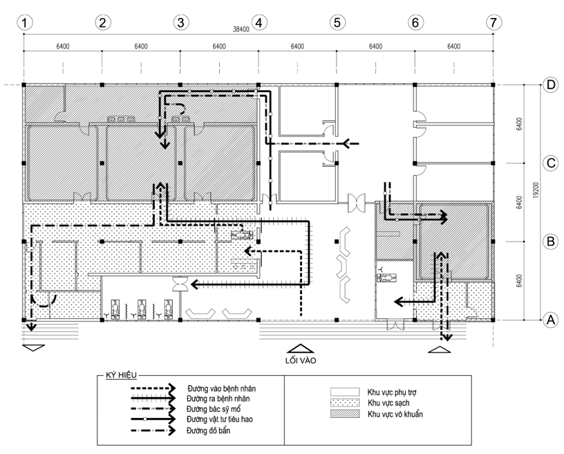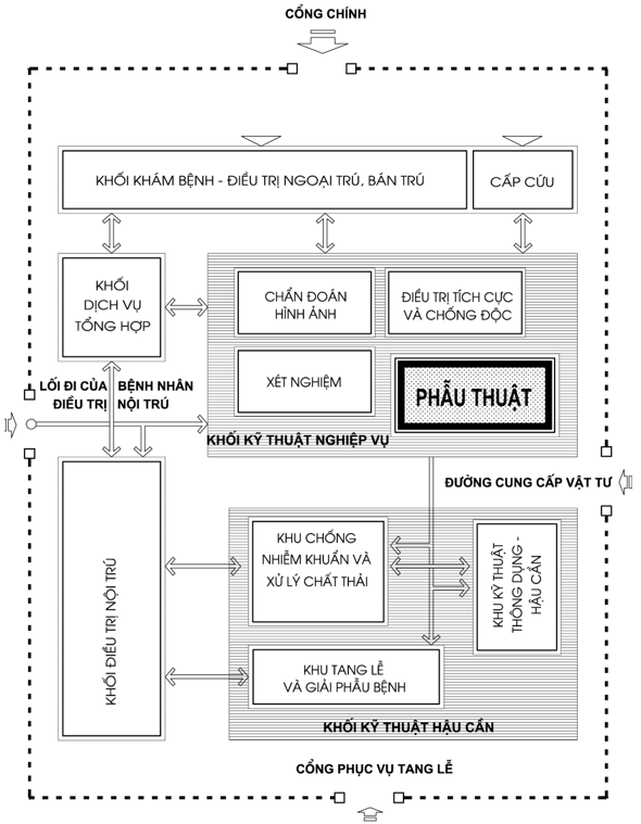 6.2. Tổ chức không gian: giải pháp thiết kế tổ chức không gian trong Khoa Phẫu thuật phải đảm bảo các yêu cầu sau: