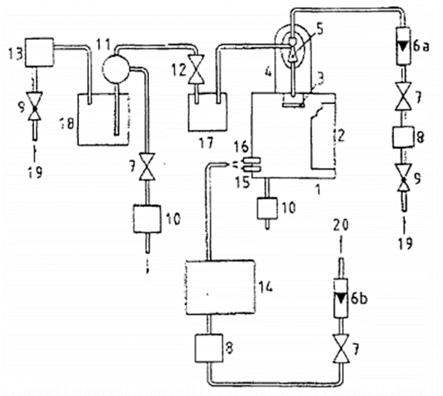 Không khí đi vào (các) phin lọc bụi để loại bỏ bụi, sau đó đi vào tấm che mặt.