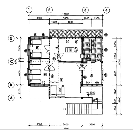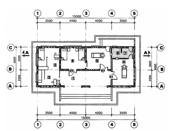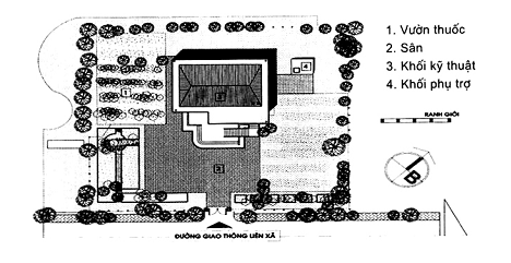 | 1. Vườn thuốc; | 2. Sân; | 3. Khối kỹ thuật; | 4. Khối phụ trợ. |